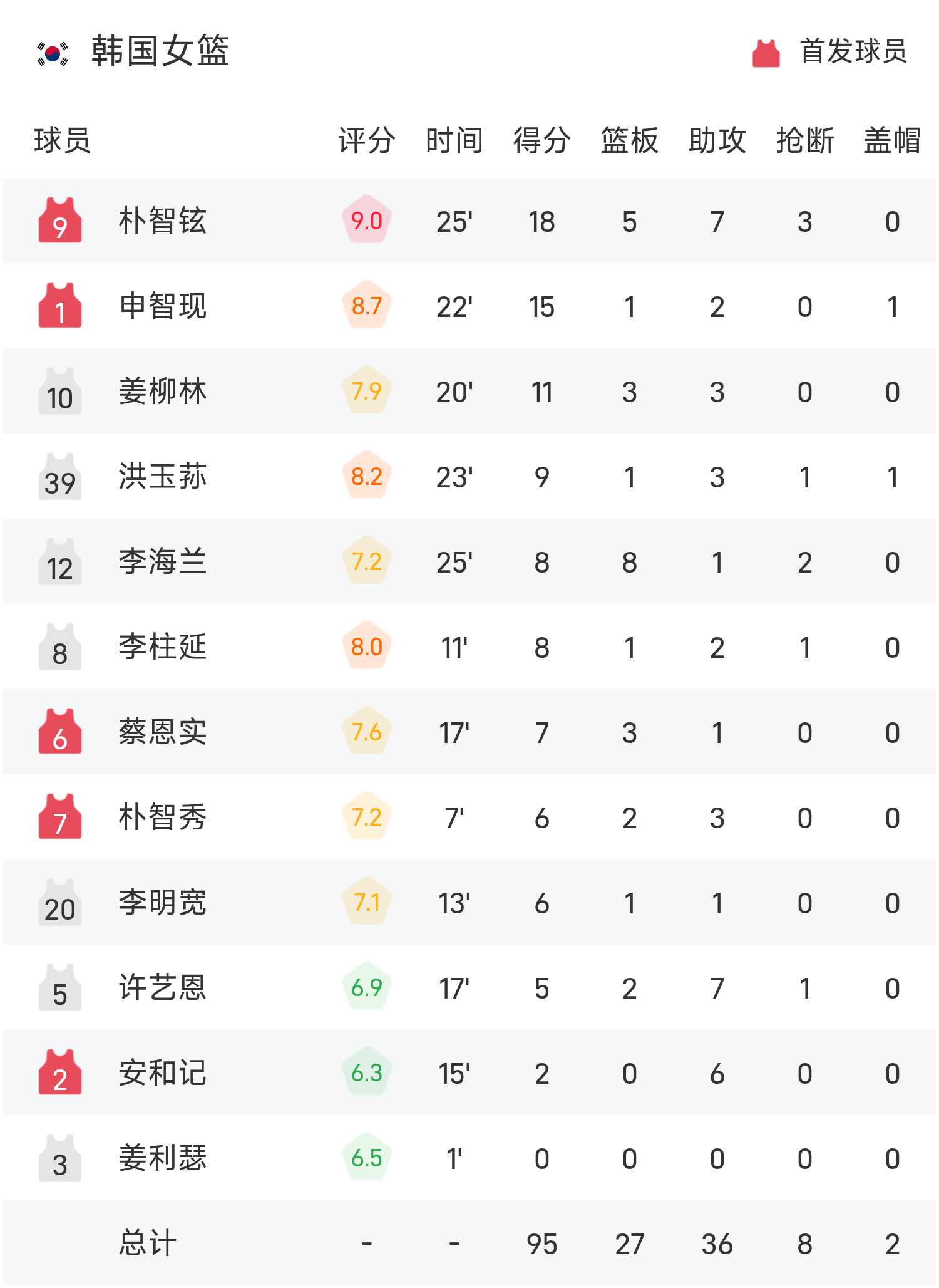 朴智铉砍下全场最高的18分5板7助,率领韩国女篮成功取胜。